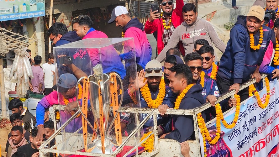 एनपीएल विजेता जनकपुर बोल्ट्सको महोत्तरीमा ‘ट्रफी परेड’